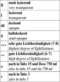 directly from the tube. By addition of the mediums 1 - 6 the artist can