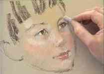 with delphiniums and wild flowers in their natural habitat - she even paints