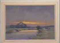 paints a river at sunset on the flat landscape of the Somerset Levels and a